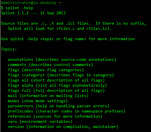 关于splint的更多操作方法,可访问官网文档: http://splint.org/documentation/