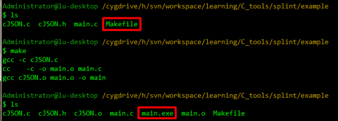 由于Makefile已写好,直接运行make命令即可,生成main.exe,且程序能够正常运行。